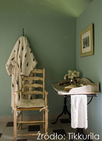 Niezwykle efektownie będzie się ona prezentować na tle ścian pokrytych farbą Tikkurila Luja 7 w kolorze M348 i doskonale wpisze się w melancholijny klimat łazienki bazującej na wyszukanych, stonowanych zieleniach.